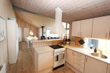 Rummeligt feriehus med alle faciliteter. Vægge delvis hvide delvis med træ. Gulvene er med ludbehandlet træ. Lofterner er overalt af naturtræ. 5 dejlige soveværelser: (DS) + (DS) + (DS) + (2ES) + (2 ES), 2 badeværelser – begge med gulvvarme og bruser – og det ene har som ekstra whirlpool og sauna. Hyggelig indrettet stue kombineret med køkken, som er optimalt udstyret med bl a opvaskemaskine og mikroovn. Der er kommet kabel-tv i huset. Der er trådløst internet i huset. Overdækket og åben terrasse, havemøbler, liggestole og sandkasse. Et godt tilbud til en eller flere familier, som ønsker at tilbringe ferien sammen.