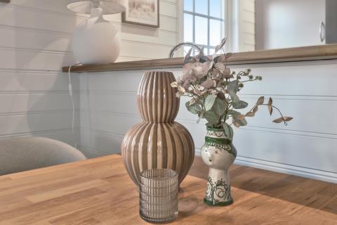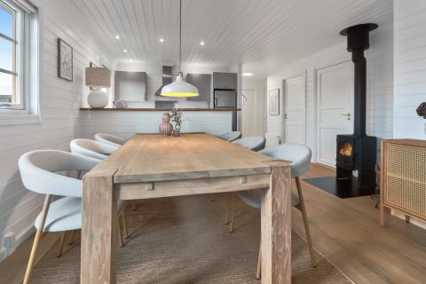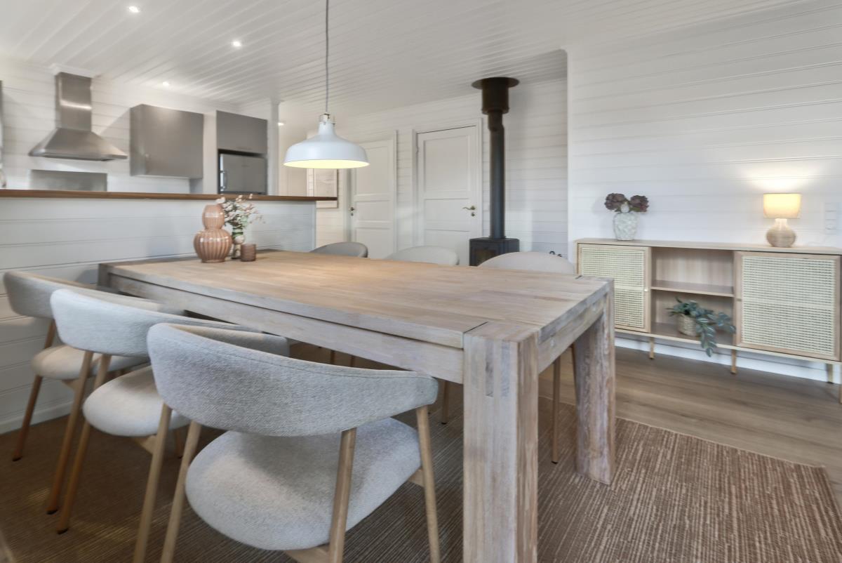 Dette dejlige feriehus i træ er bygget i 2003 og er personligt og smagfuldt indrettet delvis med klinkegulv og delvis vinylgulv. Stor hyggelig stue med brændeovn, kabel-TV, stereoanlæg med CD. Køkkenet er kombineret med stuen og er indrettet med el keramisk komfur, emhætte, mikroovn, køle-/fryserum samt opvaskemaskine. Meget lækkert badeværelse med toilet og håndvask samt vaskemaskine og tørretumbler. Der er et separat bruserum og egen indgang til husets sauna. Huset er indrettet med 3 soverum: 1DS + 1DS + 1K/1l. Der er trådløst internet. Ikke rygerhus. Husdyr er ikke tilladt.