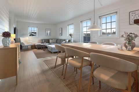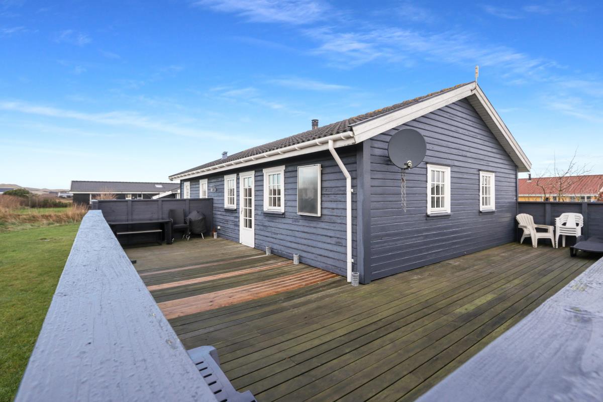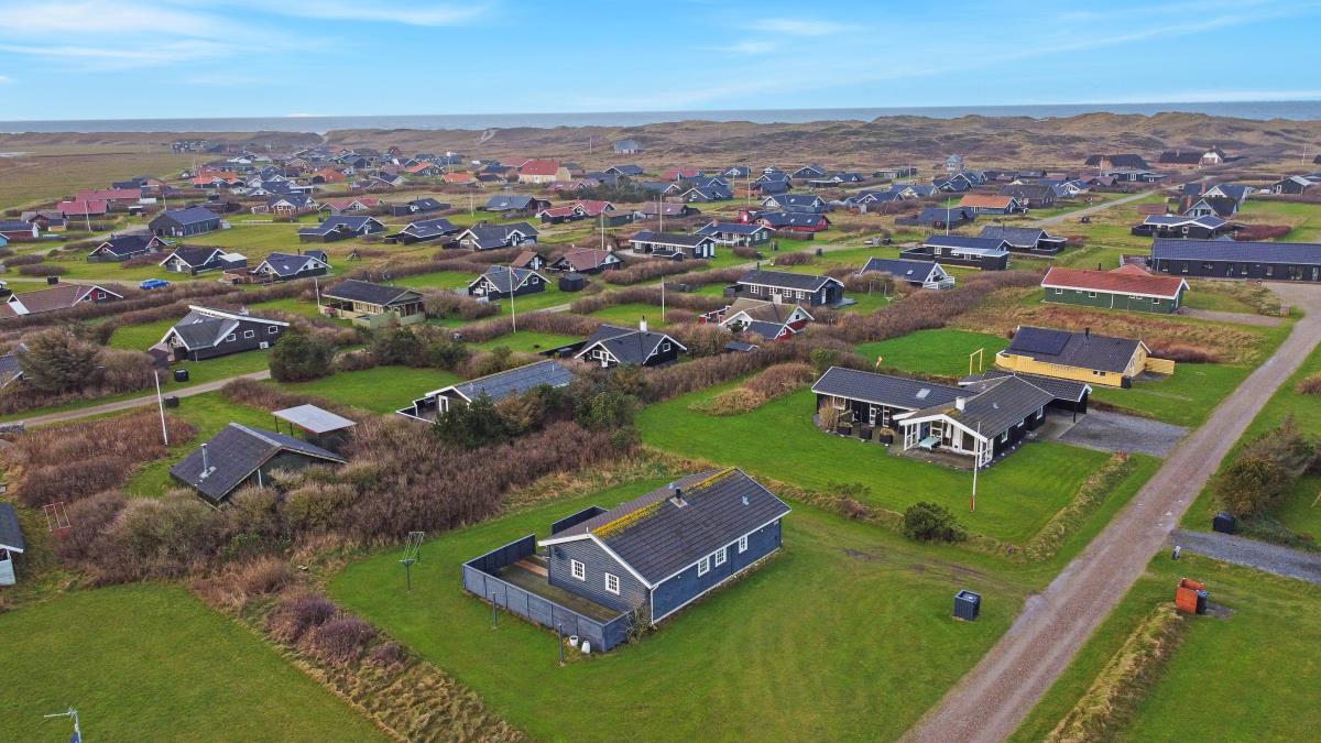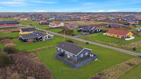 På en 900 kvm naturgrund kun 400 m. fra Vesterhavet ligger dette træhus. Huset er bygget i 2003 og det er personligt og smagfuldt indrettet med delvis klinkegulv og delvis vinylgulv. Stor hyggelig stue med ny brændeovn, farve-tv m/parabol (dog kun med tyske kanaler) samt DR1 og TV2 og stereo m/CD. Lækkert badeværelse med vaskemaskine og tørretumbler. Separat bruserum. 3 soveværelser: ( DS) + (DS) + (2K/1L). Her er der trådløs internetadgang, hvilket er gratis. ( man skal dog selv medbringe computer) Huset har endvidere havemøbler med solvogne. Alt i alt et særdeles godt tilbud til en eller to familier, der ønsker at tilbringe ferien sammen i rolige omgivelser.