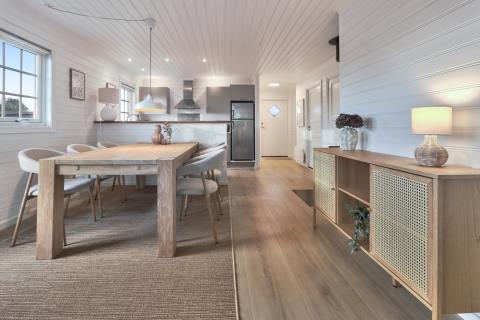 Pænt og velholdt feriehus i træ beliggende tæt på Ferring Sø og Vesterhavet. Husdyr er ikke tilladt.