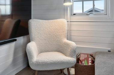 Dette dejlige feriehus i træ er bygget i 2003 og er personligt og smagfuldt indrettet delvis med klinkegulv og delvis vinylgulv. Stor hyggelig stue med brændeovn, kabel-TV, stereoanlæg med CD. Køkkenet er kombineret med stuen og er indrettet med el keramisk komfur, emhætte, mikroovn, køle-/fryserum samt opvaskemaskine. Meget lækkert badeværelse med toilet og håndvask samt vaskemaskine og tørretumbler. Der er et separat bruserum og egen indgang til husets sauna. Huset er indrettet med 3 soverum: 1DS + 1DS + 1DS. Der er trådløst internet. Ikke rygerhus. 1 husdyr er tilladt.