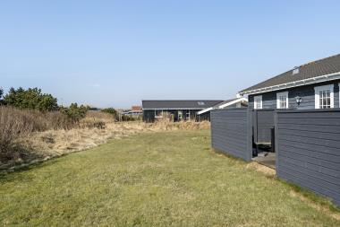Huset ligger på en 900 m2 naturgrund, med kun 400 m til Vesterhavet. Der er en dejlig terrasse med havemøbler og solvogne som kan stilles efter behov så man altid kan finde et sted i læ eller i solen. Huset er også beliggende tæt på Ferring Sø som har en vandresti omkring hele søen, så man kan nyde naturen omkring hele søen. Stranden ved Vesterhavet ligger i gåafstand fra huset og her indbydes der til forskellige aktiviteter hver dag bl.a. badning, flyve med drager samler sten eller rav eller blot slentre langs vandkanten og nyde havets brusen. Ønsker man lidt mere i ferien kan vi varmt anbefale en tur til fiskerbyen Thyborøn eller den gamle handelsby Lemvig. Begge byer byder på flere gode restauranter og butikker. Alt i alt et særdeles godt tilbud til en eller to familier, der ønsker at tilbringe ferien sammen i rolige omgivelser.