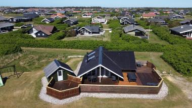 Renoveret, hyggeligt indrettet feriehus i træ med stor, lukket og delvis overdækket terrasse. Beliggende på naturgrund kun 400 meter fra Vesterhavet. Terrassen er indhegnet og dermed egnet til at man kan have sin hund gående løs rundt. Her er desuden gratis trådløs internetadgang (fiberforbindelse). Fra huset er der udsigt over området og huset er ideelt til parret eller den lille familie.