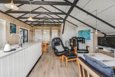 Dejligt træferiehus på 70m2. 3 soverum (1DS, 1DS, 1DS) samt barnestol. Hyggelig opholdsstue med pæne lædermøbler, TV med danske og tyske kanaler, samt et Chromecast med mulighed for at streame egne programmer. Der er en hyggelig brændeovn i huset samt energibesparende varmepumpe. Køkkenhjørne med keramisk komfur, emhætte, køleskab med fryseboks samt spisebord lige ved køkkenet. Fra stuen er der adgang til seperat sauna. Badeværelse med toilet, håndvask og bruser. Nye praktiske gulve i køkken og opholdsrum. Ikke-ryger hus. Max 1 husdyr tilladt. .