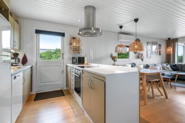 Der er gratis internetadgang i huset. Sommerhuset har en hyggelig brændeovn og varmepumpe, som begge sørger for et lavere forbrug. Der er flot trægulv i stue og køkken, mens der i soverummene er tæpper. Veludstyret køkkenhjørne med glaskeramisk komfur, emhætte, køle-fryseskab og opvaskemaskine.   Pænt badeværelse med bruser, toilet, håndvask, sauna, vaskemaskine og klinkegulv med gulvvarme. Huset har desuden et værelse i forbindelse med opholdsstuen som er aflåst til Privat brug. Max 1 hund tilladt. Huset er et ikke-ryger hus.Har man el-bil eller en Plug-In hybrid, så er der ved Ladeboks til Type 2 ladestik.