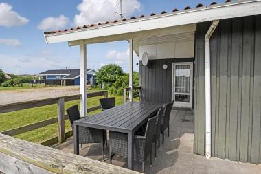Huset er omgivet af en delvist overdækket træterrasse. Gyngestativ, havemøbler, solvogne og grill. Området omkring Vejlby og Ferring sø ligger ikke langt fra det brusende Vesterhav, indkøbsmuligheder, legeplads og stranden. Naturen indbyder til udendørsaktiviteter året rundt – uanset om det er gåture i landskabet omkring søen eller en strandtur. Der er kun 300 meter til Vejlby Torv med købmanden og Cafe John Wayne, så dette gør kun ferien endnu mere komfortabel. Vejlby Klit er omgivet af vand på begge sider med Vesterhavet mod vest som altid er et besøg værd. Her kan man bade, lave sandslotte, fiske, flyve med drage eller ganske enkelt blot gå en lang tur og nyde ensomheden eller familiens nærvær. Det samme gælder iøvrigt den tætte beliggenhed til Ferring Sø, hvor der går en vandrerute rundt om.