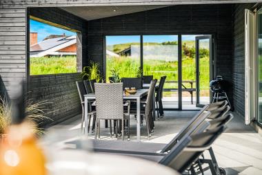 Huset er beliggende på en ca. 2.261 m2 stor kuperet, naturgrund kun 400 m fra Vesterhavet. Der er udgang til et fantastisk lukket terrasseanlæg og med en ca. 33 m2 overdækket udestue kan naturen nydes på selv de blæsende dage. Havemøbler, solvogne og grill som kan flyttes rundt efter behag. Der er masser af læ kroge og masser af muligheder for at nyde den fantastiske udsigt udover de kuperede klitter. En tur i den udendørs udespa gør oplevelsen unik og specielt på de mørke aftener med den klare stjernehimmel. En unik oplevelse som er ren terapi for sjæl og krop. Fra grunden kan man via stier nemt gå direkte over klitten til Vesterhavet. Således er der ikke langt til strandfornøjelser som badning, drageflyvning, lystfiskeri eller vandreture i den friske luft hvor man til tider kan blive blæst helt igennem. Kan du godt lide det kolde gus eller at få dyppet fødderne så ligger det skønne Vesterhav blot 400 meter fra huset. Et utrolig dejligt hus, hvor der er tænkt på det hele. Områdets købmand som har sæsonåbent, ligger ca. 1.500 m fra huset, som i sæsonen byder på frisk morgenbrød. Her kan de daglige indkøb også klares. Også området madsted ligger ca. 1.500 fra huset. Få hundrede meter fra huset finder man ”stationen” hvorfra man kan tage det lokale bumletog til enten Thyborøn eller Lemvig. Inden for 25-30 minutter kan flere aktiviteter og shopping muligheder nås. Så hvad enten I er til aktiv ferie eller total afslapning, danner dette flotte, nybygget feriehus en dejlig ramme både hvad angår hus, beliggenhed og omgivelser.