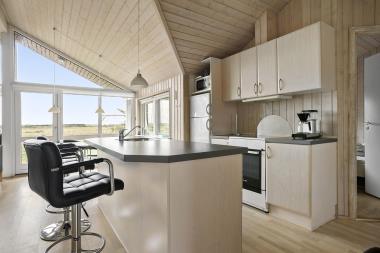 Dette flotte sommerhus ligger ideelt på en skov/naturgrund kun 350 m fra Vesterhavet og 1000 m. fra Vejlby Klit center, her forefindes indkøbsmuligheder m.m. Lofter og vægge er hvidlamineret træ. Trægulve med løse tæpper. Køkkenet er velindrettet og godt udstyret og kombineret med stue som er udstyret med pæne møbler. Særdeles veludstyret m. f.eks. tørretumler og 40 liters fryser og meget mere. Tv med Dr kanalerne, DVD og CD.Der er gratis trådløst internet i huset. 2 toiletter heraf et med spabad og direkte adgang til sauna. Det andet er kun med håndvask og toilet. 4 soveværelser: Dobbeltseng + Dobbeltseng + 2 senge + 2 senge. Solgård. varmepumpe. Havemøbler, liggestole, gynge. Husdyr tilladt. Huset bliver udlejet som hjemmekontor iflg aftale med ejer. Huset lejes ikke ud til ungdomsgrupper.