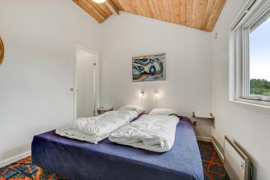 Dette meget smagfuldt og velholdte feriehus i træ er på 100 m2. Huset er indrettet med 3 dejlige værelser 1DS + 1DS + 2S og dertil kommer 2 ligge- muligheder i stuen (i en alkove). Stuen og køkken er kombineret og de store vinduespartier giver et godt lysindfald i hele rummet, der er trægulv i stueafdelingen og klinker i køkkenafdelingen. Stuen er indrettet med lædermøbler og spisebord som står tæt på køkkenet. Der er TV med parabol (kun tyske programmer) og danske programmer og der er ligeledes mulighed for at streame jeres egne TV eller radioprogrammer. Flot og meget veludstyret køkken med glaskeramisk komfur, kele-/fryseskab, opvaskemaskine og mikroovn. Meget flot badeværelse som er med toilet, håndvask, bruser, spa og indgang til sauna samt gulvvarme. Der er også et gæstetoilet med toilet og håndvask, her står også husets vaskemaskine og tørretumbler. I stuen er der også en skøn brændeovn som sammen med varmepumpen giver en behagelig varme også i de kolde perioder. Husdyr er ikke tilladt og rygning er ikke tilladt. Har man el-bil eller en Plug-In hybrid, så er der opsat ladeboks ved huset.