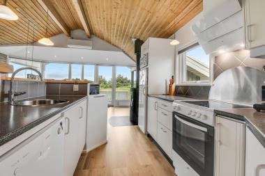 Terrasseforholdene ved huset er gode. Der er åbne og overdækkede områder ligesom der er meget gode læ forhold og terrassen er indhegnet. Der er selvfølgelig havemøbler, solvogne og grill som kan stilles efter behov, så man altid kan finde et sted i læ, i solen eller i skyggen. Fra huset er der en flot udsigt til de høje klitter ved Vesterhavet. Huset er også blot 250 m fra Vesterhavet, som hver dag byder på nye maleriske oplevelser. Til de mindste gæster er der en sandkasse og gynger. Området omkring huset er meget velegnet til vandre og cykelture. Et fantastisk hus som er perfekt for en familie eller et par som gerne vil bo tæt på Vesterhavet i et meget velholdt hus.