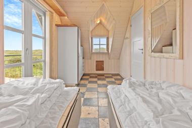 Huset er smagfuldt og stilfuldt indrettet med fokus på høj komfort og en rolig, indbydende atmosfære. På første sal møder I en charmerende og lys opholdsstue med komfortable møbler og TV – et oplagt sted at trække sig tilbage med en god bog eller nyde udsigten fra balkonen, hvor klitternes skiftende farver danner en malerisk baggrund. Etagen rummer desuden to af husets i alt fire soveværelser – det ene med direkte adgang til sin egen hyggelige balkon – samt et moderne badeværelse med toilet, bruser, håndvask og behagelig gulvvarme.