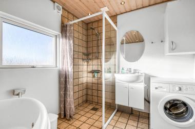 Godt indrettet feriehus på 90 m2 med 4 soveværelser (1DS, 1DS, 1ES+1KS, 1ES). Hyggelig opholdsstue med lædermøbler, spisebord, TV med danske og tyske kanaler, radio / CD / DVD. En dejlig brændeovn samt en energibesparende varmepumpe sørger for at man nemt kan holde varme også på de kølige efterårs- og vinterdage. Pænt køkkenhjørne med opvaskemaskine, komfur med el-keramiske kogeplader, emhætte, mikroovn og køleskab med fryseboks. Der er gulvtæpper i opholdsrum og soveværelser og praktisk vinylgulv i køkkenet. Flot nyere badeværelse med toilet, bruser, spabad og klinkegulv med gulvvarme og adgang til saunaen. Vaskemaskine og barnestol Ikke ryger hus. Max 2 husdyr tilladt.