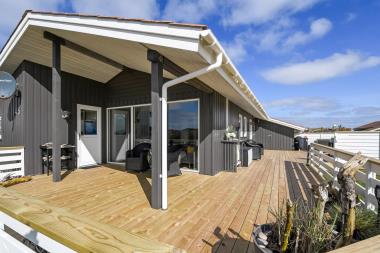 Feriehuset ligger på ca. 900 kvadratmeter åben naturgrund kun 350 m fra Vesterhavet. Huset har et åben og delvis overdækket terrasseanlæg hvor der både er grill, havemøbler og solvogne. I redskabsrummet er der ekstra afliggeplads og tørretumbler. Huset direkte ved siden af en af områdets legepladser. Der er kun 150 meter til Vejlby Torv hvor der findes en købmand der har åbent fra påske til og med oktober. Går man videre herfra er man hurtigt oppe ved Vesterhavet, som kan passeres via en overgang for gangbesværede, som også er god hvis man skal have en trækvogn eller klapvogn med på stranden. Umiddelbart cirka 600 meter syd for huset ligger Ferring Sø, hvor man kan foretage mange vandreture. Det pefekte og særdeles samgfuldt indrettet til både par og den lille familie.