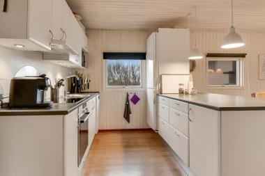 Godt indrettet feriehus på 96 m2 med 4 soveværelser (1DS, 1DS, 2S, 1K). Hyggelig opholdsstue med polstermøbler, spisebord, Smart-TV med danske og tyske kanaler, flere radioprogrammer, chromecast med mulighed for streaming af Apps / TV / Radio som I selv har et abonnement til og DVD.En dejlig brændeovn samt en energibesparende varmepumpe sørger for at man nemt kan holde varme også på de kølige efterårs- og vinterdage. Flot, nyere køkkenhjørne med opvaskemaskine, el-keramiske kogeplader, indbygningsovn, emhætte, mikroovn og køleskab med fryseboks. Badeværelse med toilet, bruser, vaskemaskine, klinkegulv med gulvvarme og adgang til saunaen. Ikke ryger hus. Max 1 husdyr tilladt.