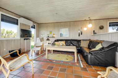 Stuen er i samme rum som køkkenet og indbyder til familiehygge. Maden kan tilberedes, mens de andre sidder i sofagruppen og samtaler lige ved siden af. Ved siden af er der en brændeovn og fladskærms-tv med både dansk og tysk TV. I den modsatte ende af stuen er spisebordet samt musikanlæg med CD. DVD afspiler og mulighed for radio over TV. Køkkenet har det allermest nødvendige i form af en glaskeramisk kogeplade, indbygningsovn, mikroovn og køle-/fryseskab. Gulvene er belagt med kakler og løse tæpper, og der er trævægge og lofter. Badeværelset har bruser, håndvask og toilet samt klinkegulv med gulvvarme. Der er 3 soveværelser hvoraf en enkel er med dobbeltseng og den anden er med en stor seng til 2 på 120 cm i bredden og det sidste rum har 2 køjer. Ikke rygerhus