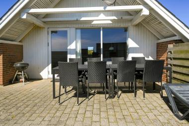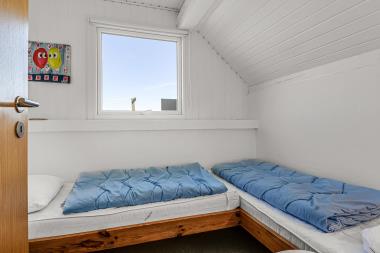 Dette hyggelige feriehus er centralt beliggende kun 300 meter fra cafeteria og købmand, og dog kun cirka 300 meter fra Vesterhavet. Der er let adgang til fælles areal med diverse boldbaner til fri afbenyttelse, da huset er nabo hertil. Huset er stort nok til 2 familier med 4 soveværelser samt ekstra toilet og man må medbringe 1 hund. Der er gratis trådløs internetadgang.