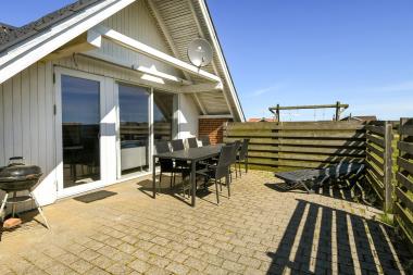 Huset har en dejlig øst-og sydvendt indhegnet terrasse. Her kan man nyde solopgangen mod øst hvor solen titter op, mens man får kaffen og naturens fuglsang udgør orkestret. Senere kan man benytte havemøblerne eller de 2 solvogne til at nyde terrassen med, mens børnene kan benytte gyngerne på grunden. Husk endelig at tage en bold med på ferien, da de nærliggende boldbaner ligger lige ved siden af og inden for øjesyn fra terrassen. Det nærliggende Vesterhav er altid et besøg værd uanset vejret og savner man lidt varme eller tag over hovedet til sine aktiviteter så er der gratis adgang til Harboøre Centret og Lemvig badeland inkluderet i lejen til dette hus for alle gæsterne.