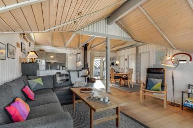 Dette træferiehus på 88 m2 er bygget i 1978 og er løbende renoveret. Der er god plads til 6 personer. Kombineret stue og køkken som er åben til kip. De store vinduespartier i huset giver en fantastisk lysindfald i rummet. Stuen er indrettet med polstermøbler og spisebordet er placeret tæt på køkkenet. Stuen er med TV og tyske programmer, CD og DVD afspiller. Stuen råder også over en dejlig brændeovn som sammen med varmepumpen sørger for en behagelig varme uanset årstid og begge er medvirkende til en lavere forbrugsafregning. Der er 3 soverum: 1DS + 1DS + 2S. Til de mindste gæster er der barneseng og barnestol. Køkkenet er indrettet med glaskeramisk komfur, køle-/fryseskab, mikroovn og opvaskemaskine. Badeværelse med toilet, håndvask og bruser samt gulvvarme. Vaskemaskine er også installeret. Ikke rygerhus og husdyr er ikke tilladt.