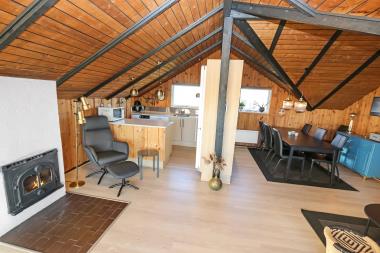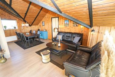 I dette hus tilbringes det meste af tiden i den hyggelige stue som går i et med køkkenet. Her er sofagruppe, lænestole samt et spisebord i et hyggeligt hjørne. I den modsatte ende af stuen er der en indmuret glasbrændeovn samt en fladskærm med DR1 og diverse tyske kanaler, samt mulighed for streaming af TV / radio / Apps via Chromecast. Ved fladskærmen forefindes endvidere en DVD-afspiller. I køkkenet findes både opvaskemaskine, køle-og fryseskab, mikrobølgeovn og glaskeramisk komfur med emhætte. I køkkenet er husets vaskemaskine også placeret. Stuen kan lukkes af ud til selve gangen som fører til badeværelset og de 3 soveværelser. Heraf er 2 soveværelser med 3 enkelt senge og et enkelt soveværelse med 3/4 seng, så det er ideelt til familieferien. Badeværelset har lige hvad man skal bruge og er komfortabelt med gulvvarme, toilet, bruser og håndvask. Har man el-bil eller en Plug-In hybrid, så er der Ladeboks ved huset til Type 2 ladestik, der kan lade op til 11 kWh.