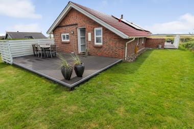 Dette velbeliggende feriehus har 4 soverum (1DS + 1DS + 2ES + 2ES). Lys og åben opholdsrum som er bygget i kip. Hyggeligt indrettet med lædermøbler, spiseplads, stort smart-TV med tyske og danske kanaler, samt Chromecast til streaming. Huset er 110 m2 stort og er bygget i 1994. Dejlig, hyggelig brændeovn og 2 økonomiske varmepumper i hver sin ende af huset sørger for hygge, samt muliggør et altid varmt og rart hus, uanset vejr og årstid. Herudover har huset solceller på taget, samt batteri som lagre op tl 5 kw. Huset har derfor grøn energi og minimalt forbrug når der bruges el. Det lækre køkken er veludstyret. Der er bl.a. kaffemaskine, mikrooven, varmluftsovn og induktions kogeplade, emhætte, opvaskemaskine og køleskab med fryser. Der er 2 lækre badeværelser i huset. Begge har toilet, bruser, håndvask og klinkegulv og det ene med gulvvarme. Fra både terrasse og stue har man en fantastisk panorama-udsigt til Ferring Sø, samt udsigt til de høje klitter ved Vesterhavet. Ikke ryger hus. Max 1 husdyr er tilladt.