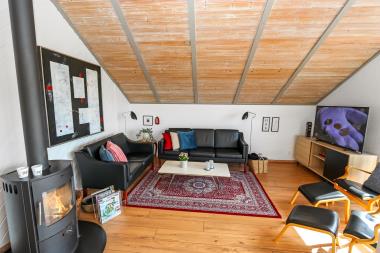 Dette velbeliggende feriehus har 4 soverum (1DS + 1DS + 2ES + 2ES). Lys og åben opholdsrum som er bygget i kip. Hyggeligt indrettet med lædermøbler, spiseplads, stort smart-TV med tyske og danske kanaler, samt Chromecast til streaming. Huset er 110 m2 stort og er bygget i 1994. Dejlig, hyggelig brændeovn og 2 økonomiske varmepumper i hver sin ende af huset sørger for hygge, samt muliggør et altid varmt og rart hus, uanset vejr og årstid. Herudover har huset solceller på taget, samt batteri som lagre op tl 5 kw. Huset har derfor grøn energi og minimalt forbrug når der bruges el. Det lækre køkken er veludstyret. Der er bl.a. kaffemaskine, mikrooven, varmluftsovn og induktions kogeplade, emhætte, opvaskemaskine og køleskab med fryser. Der er 2 lækre badeværelser i huset. Begge har toilet, bruser, håndvask og klinkegulv og det ene med gulvvarme. Fra både terrasse og stue har man en fantastisk panorama-udsigt til Ferring Sø, samt udsigt til de høje klitter ved Vesterhavet. Ikke ryger hus. Max 1 husdyr er tilladt.