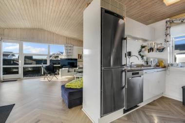 Pænt indrettet feriehus med kombineret opholdsstue og køkken. Stuen er indrettet med lædermøbler, Smart-TV med danske og tyske programmer og en skøn brændeovn, som sammen med varmepumpen sørger for en behagelig varme og begge er medvirkende til en lavere forbrugsafregning. Tæt på køkkenet er spisebordet placere. Åben køkken med glaskeramisk komfur, køle-/fryseskab, emhætte, opvaskemaskine og mikroovn. Stue og køkken er med nyt sildebenspaketgulv. 3 soverum: 1DS + 1DS + 2S og alle soverum er med nyt sildebenspaketgulv. Nyrenoveret badeværelse med toilet, håndvask, bruser samt adgang til sauna og med gulvvarme. Til de mindste gæster er der 1 barneseng og 1 barnestol. Ikke rygerhus. 1 husdyr er tilladt.