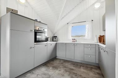 Feriehuset er 75 m2 stort og særdeles velholdt. Opholdsrummet er lyst og luftigt med loft til kip, smukke trægulve og en behagelig, nordisk atmosfære. I stuen kan I nyde varme og hygge fra brændeovnen, mens varmepumpen sikrer et behageligt indeklima året rundt. Der er fibernet-TV, Fiber-Internet og gode polstermøbler, som giver mulighed for ægte afslapning efter en aktiv dag i området. Opholdsrummet ligger i åben forbindelse med det funktionelle køkken, der er udstyret med el-keramiske kogeplader, opvaskemaskine. Indbygningsovn og køle-/fryseskab, så I kan tilberede og nyde feriens måltider i rolige omgivelser.