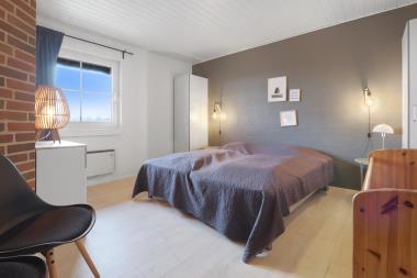 Indvendigt er der trælofter og vægge af mursten, gulve i køkken og spisehjørnet er belagt med trælaminat, tæpper i opholdstuen og på værelserne. Poolrummet er med en swimmingpool, som er 4,7 x 2,8 x 1,2 m og med modstrømsanlæg, gulvvarme og klinkegulv og optimeret med energibesparende varmepumpe. Fra poolrummet er der adgang til badeværelse med gulvvarme og bruseniche. Husets andet badeværelse er særdeles rummeligt, og indeholder toilet, bruser, 2 personers spabad, vaskemaskine, tørretumbler og adgang sauna. Det funktionelle køkken er med kogeø og udstyret med keramiske kogeplader, varmluftovn, opvaskemaskine og fryser. Opholdstuen, hvorfra der er direkte adgang til husets poolafdeling og til terrasse, er indrettet med komfortable møbler, brændeovn, smart-TV, som har indbygget danske og tyske TV-programmer, radio og mulighed for streamingstjenester, DVD. 3 soveværelser med 1DS + 1DS + 1DS samt alkove i stuen med 2 sovepladser og endvidere stor hems (med ståhøjde) med 2 sovemuligheder på madrasser. Til de mindste feriegæster er der barneseng og barnestol. Huset har 350 mm loftsisolering og samtidigt er der installeret 2 varmepumper , som gør huset energibesparende. 2 hunde er tilladt. Depositum vintersæson kr. 4500 og sommersæson kr. 2200. Som lejer af dette hus er der gratis adgang til Harboøre Centeret .