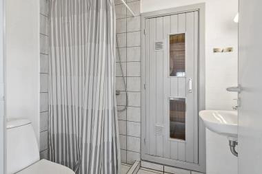 Huset har 4 soveværelser med henholdsvis 1DS + 1DS + 2S + 2S. Barneseng. Husets 2 badeværelser er begge med bruser og gulvvarme, dog er det ene badeværelse i poolrummet, hvor husets lækre nye spa også findes. I poolrummet er der selvfølgelig poolen, som er 3x6m og er 1,50m dyb. Polen er undervandsbelyst og med modstrømsanlæg/svømmetræner, her kan der tages en god, afslappende svømmetur, poolen er opvarmet med luft til vand varmepumpen så det gør jo at forbrugsafregningen blir lavere og så bagefter gå ind og blive opvarmet i saunaen. Fra 2026 er der luft til luft varmepumpe installeret. Har man el-bil eller en Plug-In hybrid, så er der ved Ladeboks til Type 2 ladestik, der kan lade op til 11 kWh. Depositum vintersæson kr. 3000 og sommersæson kr. 2200. Ikke rygerhus