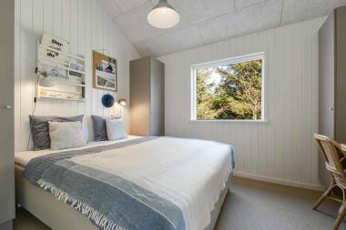 Feriehus er på hele 124m2 og er i særdeleshed veludnyttet med bl.a. stort køkken/alrum kombineret med stuen. Det giver følelsen at, man som familie er samlet uanset om en person er i køkkenet og resten af familien slænger sig i den bløde sofa. Der er højt til himlen, huset har nemlig loft til kip, som er med til at gøre huset ekstra rummeligt. Det store vinduesparti giver et fantastisk lysindfald og fungerer som et levende maleri.