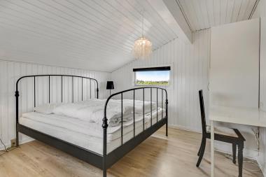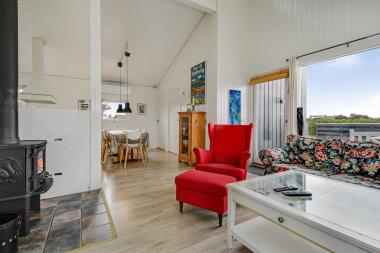 Dette flotte arkitekttegnede feriehus ligger på en naturgrund kun 300 m fra Vesterhavet og 200 m fra cafeteria (åben i sæsonen). Afstanden til Ferring Sø er kun 600 m. Huset er renoveret i 2009 og fremstår lyst og venligt med store vinduer og terrassepartier. Stuen er indrettet med moderne og komfortable møbler, CD, DVD, radio, TV med danske og tyske kanaler. 4 rummelige soveværelser: 1DS + 1DS + 1DS + 1DS. Badeværelse: Toilet, håndvask og bruser, sauna og gulvvarme. Godt indrettet køkken som ligger i forbindelse med stuen. Køkkenet indeholder Glaskeramisk komfur, køleskab, og opvaskemaskine. i udhuset står der en 120 l fryser. Til de små er der højstol. Vaskemaskine. Husdyr er ikke tilladt. Ikke rygerhus.