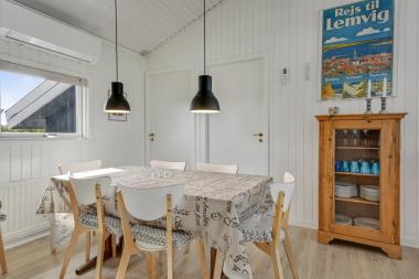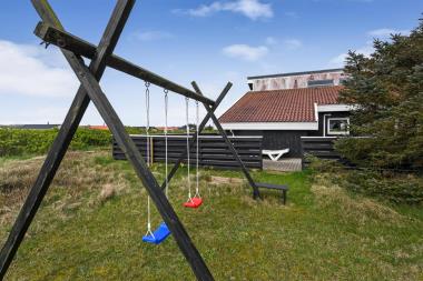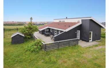 Dette flotte arkitekttegnede feriehus ligger på en naturgrund kun 300 m fra Vesterhavet og 200 m fra cafeteria (åben i sæsonen). Afstanden til Ferring Sø er kun 600 m. Huset er renoveret i 2009 og fremstår lyst og venligt med store vinduer og terrassepartier. Stuen er indrettet med moderne og komfortable møbler, CD, DVD, radio, TV med danske og tyske kanaler. 4 rummelige soveværelser: 1DS + 1DS + 1DS + 1DS. Badeværelse: Toilet, håndvask og bruser, sauna og gulvvarme. Godt indrettet køkken som ligger i forbindelse med stuen. Køkkenet indeholder Glaskeramisk komfur, køleskab, og opvaskemaskine. i udhuset står der en 120 l fryser. Til de små er der højstol. Vaskemaskine. Husdyr er ikke tilladt. Ikke rygerhus.