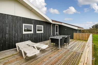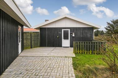Stort træpoolhus med mange faciliteter. Feriehuset ligger centralt i Vejlby klit; kun 200 m. til indkøbscenter og 300 m. til vesterhavet og 700 m. til Ferring sø. Gratis internetadgang. Poolen måler 6x3x1,5 og de badende kan betragtes indefra stuen gennem de store glasskydedøre. I forbindelse med poolrummet er der adgang til sauna. Undenomsarealerne består af hele 3 terrasser, hvor en endda har udendørs pejs. Køkken med opvaskemaskine, microovn og 50 l fryser. Stue med brændeovn, dvd, stereoanlæg med cd og Fladskræms TV med Dr1 og tv2, Parabol (kun med tyske kanaler.) Huset har 2 badeværelser begge med gulvvarme. 1 med bruser, toilet og håndvask og 1 med toilet og håndvask. 4 soverum: 2 værelser med dobbeltsenge, 1 værelse med 4 køjer og 1 værelse med 2 senge. Vaskemaskine og tørretumbler. Til huset hører også en garage. Et hus hvor man er uafhængig af vejret. Adgang til Harboøre-Centeret – www.harbooere.dk/hallen Vand og energiomkostninger sommer ca. kr. 1200 til kr. 1500 kr. Vinter fra kr. 1500 til kr. 2500 afhængig af vejret.