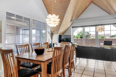 Huset er 165 m2 stort og har 4 dejlige soverum (1xdobbeltseng, 1xdobbeltseng, 2xenkeltsenge og 4xkøjesenge) samt en hems med 2 sovepladser til begejstring for mange børn og barnlige sjæle. I hjertet af huset findes et veludstyret køkken/alrum hvor loftet går til kip og hvor småsprossede vinduer bidrager til den hyggelige feriestemning. Her er alt i hårde hvidevarer; komfur med glaskeramiske kogeplader, emhætte, opvaskemaskine, mikroovn, stort amerikanerkøleskab med fryseboks og sågar et vinkøleskab. Nyd maden ved spisebordet eller slap af i de behagelige sofamøbler. TV i stuen er med danske og tyske kanaler og der er mulighed for brug af Chromecast. Der er ekstra TV og DVD på hemsen, hvor man kan lave sin egen lille biograf. Skulle det blive for koldt, eller skal stemningen blusses op, sætter man blot gang i husets brændeovn, hvor flammerne og den intensive varme kan nydes. Der er hvide klinkegulve i stue og køkkenområde med gulvvarme og der er gulvtæpper/parketgulve i soveværelserne. Husets wellness pool-afdeling rummer udover poolen et spabad og en sauna og huset har hele 3 badeværelser, med toilet, bruser, håndvask samt gulvvarme og en luft til vand varmepumpe. Vaskemaskine og tørretumbler er en selvfølge og er placeret i husets entré. Der er udgang fra opholdsstuen til husets store og delvise overdækkede samt indhegnede terrasse. På terrassen er der havemøbler, parasol, solsenge, sandkasse, rutchebane, bord/bænkesæt til de små m.m. Inde i huset er der en barneseng, der kan slåes op, til de helt små. Huset er et ”ikke ryger hus”. Max. 2 husdyr er tilladt. Der er installeret varmepumpe i huset, hvilket betyder at du som gæst kan spare en del på din elvarmeregning – varmepumpen leverer op til 4 gange så meget effekt, som den bruger. Huset lejes ikke ud til ungdomsgrupper. Har man el-bil eller en Plug-In hybrid, så er der mulighed for opladning gennem opsat ladeboks på gavlen i den nordlige ende af huset. Depositum vintersæson kr. 3.000 og sommersæson kr. 2.200.