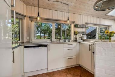 Træd ind i dette skønne og rummelige feriehus på 100 m2, hvor komfort og hygge mødes. Der er tre godt indrettede soveværelser (1DS, 1DS, 2S). Herudover er der også en hyggelig hems med plads til yderligere tre personer. En rigtig lille hule, som børnene vil elske. Der er rigeligt med plads til hele familien eller gruppen af venner – der er plads til 8 personer. Den åbne opholdsstue, flot indrettet i lyse og venlige farver, med det lækreste lys fra ovenlysvinduerne inviterer til afslapning i det hyggelige sofahjørne foran den knitrende brændeovn. I kan nyde jeres yndlingsfilm på TV med danske og tyske kanaler. Den opsatte varmepumpe sørger for fantastisk indeklima året rundt og bidrager til en energisparende opvarmning af huset. Køkkenhjørnet er udstyret med alt, hvad I behøver for at tilberede lækre måltider. Samtalekøkkenet har alt i service, køkkengrej, opvaskemaskine, keramiske kogeplader, indbygningsovn, køle-/fryseskab og emhætte. Spisearrangementet er praktisk placeret lige ved køkkenet og giver jer mulighed for at dele uforglemmelige øjeblikke sammen.