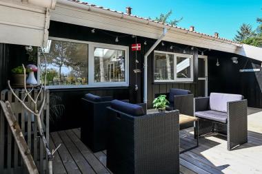 Dette skønne feriehus er beliggende på en fantastisk sydvendt grund på ca. 1.200 m2 med mange solkroge og mulighed for læ. Der er kun 350 meter fra Vesterhavet i det populære område Viktoriavej. Der er en stor terrasse med havemøbler, solvogne og grill, og det er altid muligt at finde en plads i solen. Som noget ganske specielt er der på den private grund også en wellnessafdeling udenfor med et udendørs vildmarksbad, som opvarmes med brænde. Få meter fra terrassen står den hyggelige shelter med plads til fire personer.