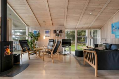 Parker bilen på den anlagte gårdsplads og begynd udpakningen. Hyggelig, kombineret opholdsstue med god brændeovn og et veludstyret køkkenhjørne byder jer velkommen. Opholdsstuen er pænt indrettet med bl.a. lædermøbler, TV med danske og tyske programmer, radio / CD / DVD og dejlig brændeovn samt en varmepumpe som begge hjælper til med en lavere forbrugsafregning. Tæt ved køkkenet står spisebordet til 8 personer, som hele familien kan samles ved når sulten skal stilles. Køkkenhjørne med glaskeramisk komfur, emhætte, mikroovn, opvaskemaskine og køleskab med fryseboks. 4 soveværelser (1DS, 1DS, 2ES, 2ES) med gode senge og praktiske trægulve. Depotrum med højstol og barneseng til de mindste børn. Husets badeværelse har bruser, toilet, håndvask, nedsænket spabad, direkte adgang til sauna og klinkegulv med gulvvarme. Ekstra badeværelse med toilet, bruser, håndvask og klinkegulv med gulvvarme. 2 husdyr tilladt. Et utrolig populært hus med mange gengangere som besøger huset år efter år. Ikke rygerhus