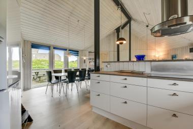 Midt i huset findes en dejlig stue med trægulve, brændeovn og fladskærm med DR1, TV2, TV2 News samt parabol med tyske kanaler. Hertil er der CD og DVD samt gratis internetadgang. I sammenhæng med stuen er der et veludstyret køkken, der blandt andet indeholder mikroovn og opvaskemaskine. Stuen er flankeret af 2 fløje, som hver indeholder badeværelser og soveværelser. Den vestlige fløj består af en lille stue, hvorfra der er tilgang til en hems med 2 liggemuligheder. Ydermere er der adgang til et soveværelse med en dobbeltseng og et andet værelse med 1 køjeseng og 1 enkeltseng. På denne fløj er der også et badeværelse med puslebord, toilet, brus og håndvask samt tørretumbler og vaskemaskine. I den østlige fløj findes ligeledes et værelse med dobbeltseng samt et værelse med 1 køjeseng og 1 enkeltseng. Herudover er badeværelset her udstyret med brusebad, toilet, håndvask, spa og sauna. Børnevenligheden udtrykkes også ved at barnestol og barneseng er standard i huset. Husdyr er ligeledes tilladt, og huset er udstyret med varmepumpe. I udhuset er der endvidere en ekstra fryser på 100 liter. Har man el-bil eller en Plug-In hybrid, så er der Ladeboks ved huset til Type 2 ladestik, der kan lade op til 11 kWh. 2 husdyr tilladt.