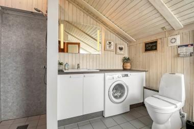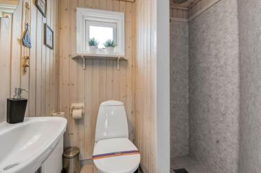 96 m2 stort, Rummeligt og komfortabelt indrettet feriehus i træ. Opholdsstuen er åben til kip og store vinduespartier, giver et rigtig godt lys inde i huset. Opholdsstuen er opdelt i spisestue, som er kombineret med det åbne nye køkkenhjørne. Opholdsstuen med, lædermøbler, spisebord, bluetoohthøjtaler, Smart-TV med danske og tyske programmer samt mulighed for streaming af TV/radio/apps. Nyd udsigten over området og slap af foran den knitrende, nye brændeovn som sammen med varmepumpen hjælper med at reducere udgiften til varmeregningen. Flot, nyt og praktisk hårdt gulv i opholdsrum og køkkenhjørne. 4 gode soverum (2ES, 1DS, 1DS, 1KS) samt en hems med 2 ekstra sovepladser) I hvert soveværelse med dobbeltseng er der et Smart-TV med mulighed for streaming af egne programmer. Til de små gæster er der puslepude og babybadekar til rådighed. Nyt køkkenhjørne med alt i service / køkkengrej samt komfur med glaskeramiske kogeplader, emhætte, opvaskemaskine, køleskab med fryseboks og mikroovn. Huset råder over 2 badeværelser begge med klinkegulv med gulvvarme, toilet, håndvask og bruser. Det ene badeværelse er med helt nyt spabad og direkte adgang til saunaen samt ny vaskemaskine. Ikke ryger hus. 1 husdyr er tilladt.