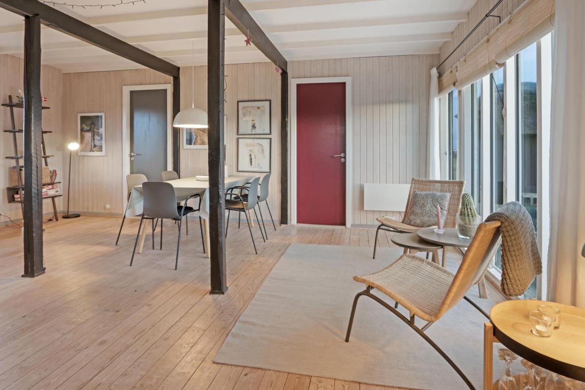 Via den brugervenlige trappe i opholdsstuen kommer I let op på 1. Etage. Her er der endnu et dejligt opholdsrum. FRA ET 55” SMARTTV KAN DER NYDES UNDERHOLDING FRA BLANDT ANDET DANSK TV1 OG TV 2 OG FRA DE UTALLIGE TYSKE OG ANDRE UDENLANDSKE SATELLIT PROGRAMMER. SMARTTV’ET GIVER ENDVIDERE MULIGHED FOR STREAMING AF EGNE ABONNEMENTER AF BLANDT ANDET NETFLIX, HBO OG VIAPLAY. DER ER OGSÅ MULIGHED FOR AT LYTTE TIL MUSIK FRA HUSETS BLUETOOTH-HØJTTALER. Nyd flammerne ved den hyggelige brændeovn som sammen med den opsatte varmepumpe i stueetagen sørger for et minimalt forbrug til opvarmning. Udgang til balkon med unik udsigt til Vesterhavet. På 1. etage findes også 2 af de dejlige soverum (1DS, 1DS)
