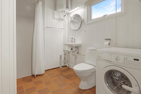 Badeværelse med toilet, bruser, håndvask, vaskemaskine og klinkegulv med gulvvarme. Max. 1 husdyr er tilladt. Ikke-ryger hus.