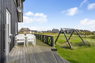 Feriehuset er beliggende på en 2.616 m2 stor klitgrund kun 100 meter fra Vesterhavet. Dejligt, romantisk terrasseanlæg med havemøbler, solvogne og GAS grill. Nyd den helt unikke mulighed det er at sidde på terrassen samtidig med, at man kan høre Vesterhavet lige på den anden side af klitterne, Der er også rig mulighed for at nyde solen, hinanden eller en god grillaften. Gå en tur med hunden i det rolige feriehusområde, henover de høje klitter og straks derefter åbenbarer Vesterhavet sig. Hver dag byder Vesterhavet på nye maleriske oplevelse, der invitere til en frisk gå- eller løbetur. Eller hvad med en lille tur på ca. 10 – 15 min op til områdets lille købmand, som i sæsonen har åbent og byder på frisk morgenbrød og hvor de daglige indkøb også kan klares. Så hvad enten du er til aktiv ferie eller total afslapning danner dette flotte feriehus den perfekte ramme både hvad angår hus, beliggenhed og omgivelser. Indenfor kort køreafstand nås både den aktive handelsby i Lemvig med flere specialbutikker eller den unikke fiskerby Thyborøn, som udover den aktive fiskerihavn også byder på badestrand og op til flere aktivitetstilbud, som alle er et besøg værd.