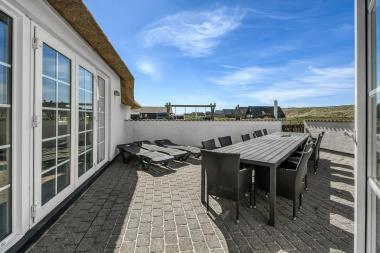 Pænt stråtækt stenhus med Wi-fi og halvcirkelformet poolrum med spa, sauna. Unikt beliggende, moderne feriehus med alle tænkelige faciliteter kun 100 m. til Vesterhavet. Nyd husets mange muligheder eller gå en tur ved Vesterhavet.