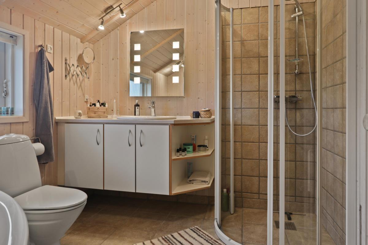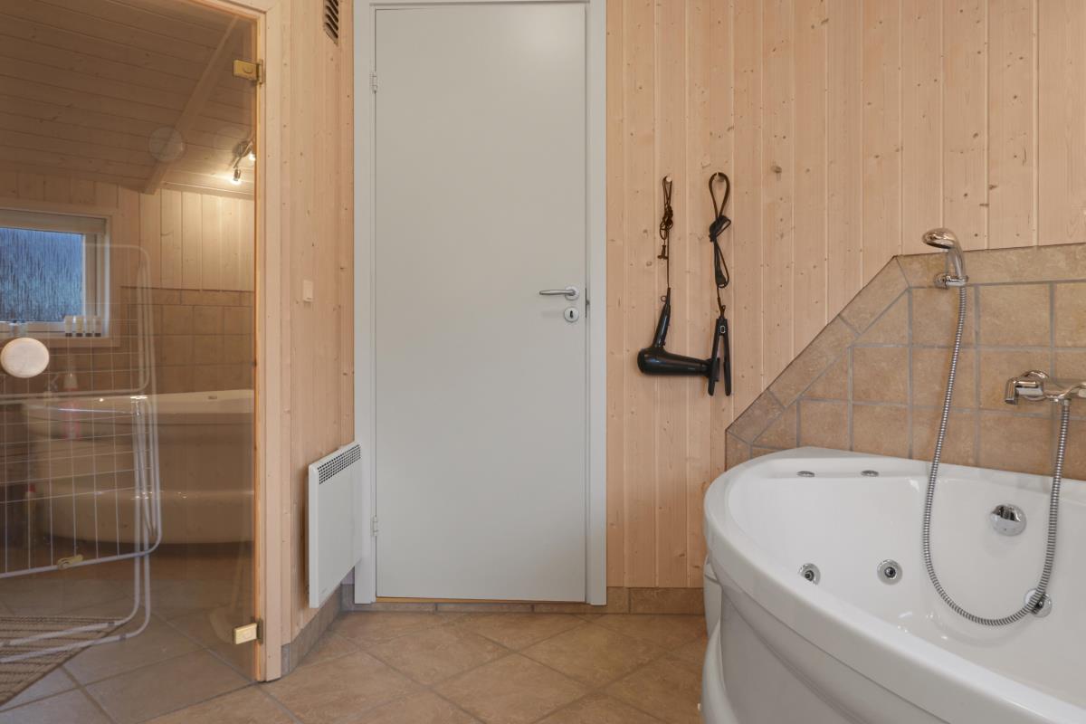 Huset rummer tre dejlige soveværelser med gode senge og plads til hele familien, samt to badeværelser. Det store badeværelse er en sand wellness-oase med gulvvarme, spabad og direkte adgang til sauna – perfekt efter en lang gåtur langs stranden.