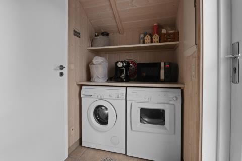 Dejlig entré med vaskemaskine, tørretumbler og god plads til overtøj og sko.
