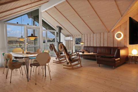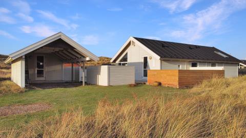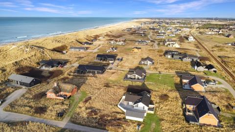 Huset ligger ugeneret på en stor 1.241 m² natur- og klitgrund, hvor marehalmen vajer i vinden, og hvor I kan nyde stilheden og den friske havluft. Indenfor mødes I af en lys, venlig og indbydende atmosfære med trægulve i hele huset og en gennemtænkt indretning, der indbyder til nærvær og afslapning.