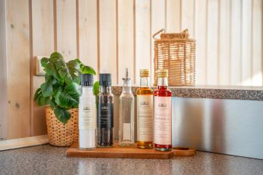 Efter en frisk gåtur i klitterne kan du vælge mellem den indendørs spa og sauna – eller hoppe i det udendørs vildmarksbad med bobler og udebruser, hvor udsigten over klitterne fuldender oplevelsen.