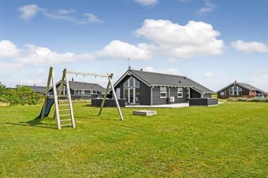 På en 1200 kvm naturgrund kun få minuters gang fra Vesterhavet finder man dette indbydende træferiehus. Huset er et nybygget kvalitetshus ( 2004) som er lys og venlig indrettet. Stuen er smagfuld møbleret og veludstyret med brændeovn, TV med parabol (dog kun med tyske kanaler), DVD og stereo med CD. Gratis internetadgang. Flot stort badeværelse med spabad, gulvvarme og adgang til husets 2-3 personers sauna, derudover er der et ekstra gæstetoilet til rådighed. Til børnene er der gynger, sandkasse og højstol. 3 soverum: (DS) + (DS) + (2E) . Huset har 3 terrasser – mod syd ,øst og vest. Husdyr er ikke tilladt.