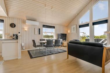 På en 1200 kvm naturgrund kun få minuters gang fra Vesterhavet finder man dette indbydende træferiehus. Huset er et nybygget kvalitetshus ( 2004) som er lys og venlig indrettet. Stuen er smagfuld møbleret og veludstyret med brændeovn, TV med parabol (dog kun med tyske kanaler), DVD og stereo med CD. Gratis internetadgang. Flot stort badeværelse med spabad, gulvvarme og adgang til husets 2-3 personers sauna, derudover er der et ekstra gæstetoilet til rådighed. Til børnene er der gynger, sandkasse og højstol. 3 soverum: (DS) + (DS) + (2E) . Huset har 3 terrasser – mod syd ,øst og vest. Husdyr er ikke tilladt.