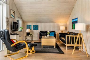 Indbydende og velindrettet feriehus på 103 m2. Huset byder på entré med plads til overtøj. Køkkenhjørne og stue glider let og naturligt sammen, og derfor kan familien hygge sig sammen, når der skal laves noget i køkkenet. Køkkenhjørnet er veludstyret med bla. keramiske kogeplader, indbygningsovn, mikroovn, emhætte, opvaskemaskine, køleskab med fryseboks og alt i service og køkkengrej. Mod opholdsstuen afgrænses køkkenhjørnet at en lille halvvæg, hvor der er placeret 2 barstole, som gør det nemt at samtale og hygge med et glas vin, når måltiderne forberedes. På vej ind i stuen går man forbi et dejligt spisebord, som er praktisk placeret lige ved køkkenhjørnet. Opholdsstuen er indrettet med pæne lædermøbler, TV med danske og tyske kanaler, gratis internet, DVD/DC/Radio. En dejlig brændeovn og varmepume sørger for ekstra hygge samt varme til de rå dage ved Vesterhavet. Huset byder på 2 badeværelser. Nyd det store, flotte badeværelse med spabad, gulvvarme, bruseniche i glassten, toilet, håndvask, og klinkegulv med gulvvarme. Lige ved siden af det store badeværelse, er et lille ekstra rum. Her er vaskemaskine og tørretumbler placeret, ligesom der er adgang til husets 2-3 personers sauna.Gæstetoilet med med toilet, håndvask og klinkegulv med gulvvarme. 3 rummelige soverum (1DS, 1DS, 2ES). Det samme trægulv går igen i alle soverum. Køkkenhjørne med klinkegulv. I alle rum er der god plads og masser af luft. Opholdsrum er bygget i kip, hvilket gør, at der også er 1 hems, som kan bruges til opbevaring eller leg for børn og barnlige sjæle. Barneseng og højstol til de mindste. Har man el-bil eller en Plug-In hybrid, så er der ved Ladeboks til Type 2 ladestik, der kan lade op til 11 kWh. Ladekabel skal man selv medbringe. Ikke-ryger hus. Husdyr ikke tilladt.